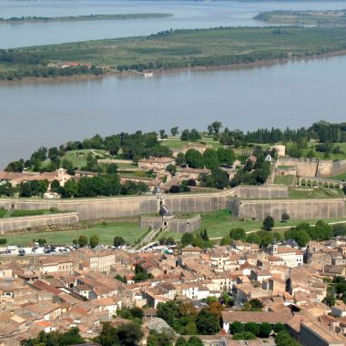 Découvrez Bourg, ou « Burgus » au temps romain, cité médiévale classée “Village ancien”, qui domine la Dordogne depuis son piton rocheux. Elle se découvre sur deux niveaux : la ville haute, cœur du village, vous propose une halle couverte, le “Musée de la citadelle”, le Château de la citadelle (aujourd’hui demeure néoclassique) ou encore une villa mauresque. La ville basse, quant à elle fait la part belle au port et activités nautiques.