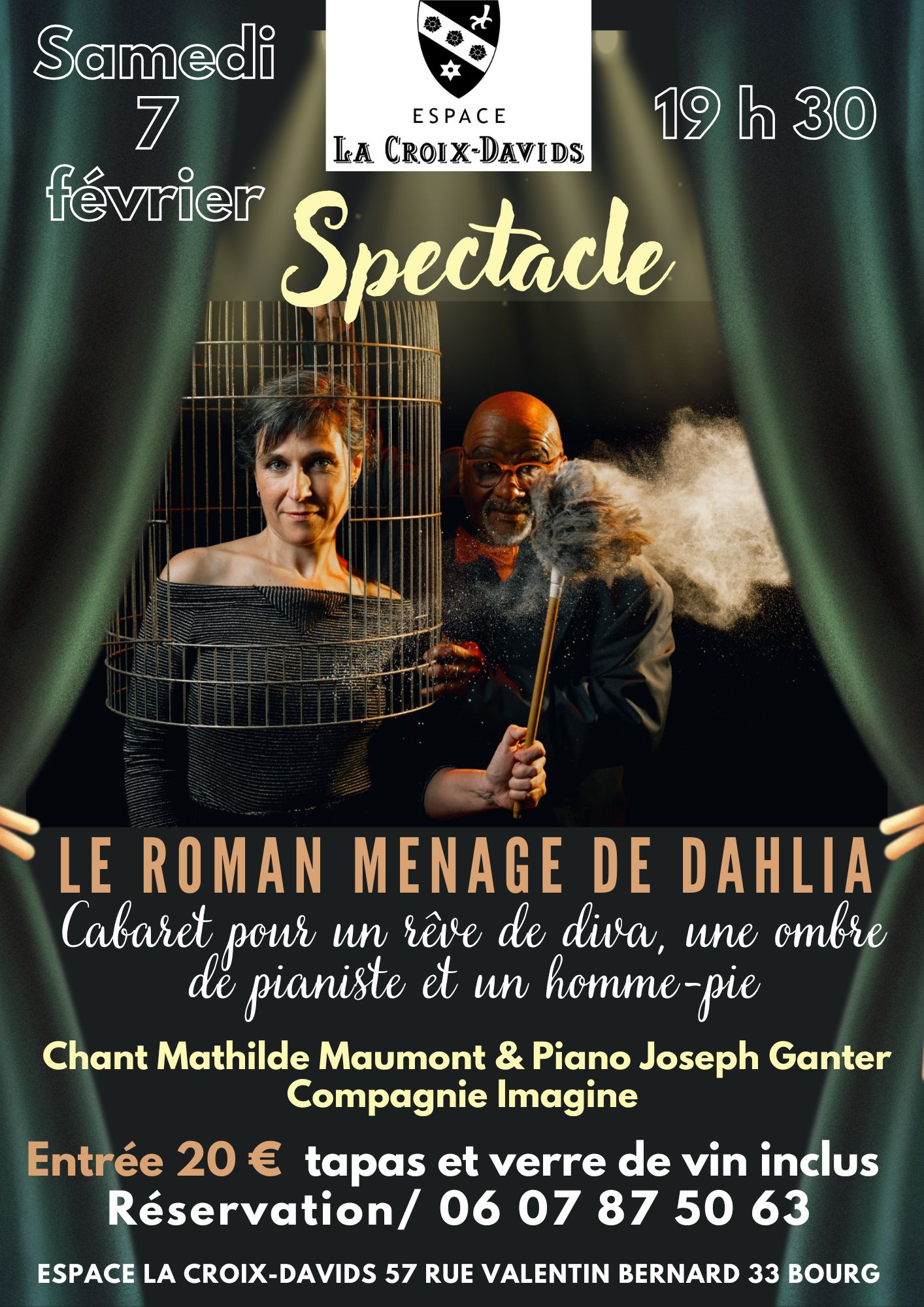Le samedi 7 février à 19 h 30, nous invitons Mathilde Maumont à la voix et au jeu et Joseph Ganter au piano et jeu dans un spectacle amusant et original " LE ROMAN MENAGE DE DAHLIA ".